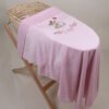 بلانكت أطفال وردي ناعم جدًا، يتميز بتطريز دقيق لاسم الطفل مع رسمة أرنب لطيف تحيط به فراشة وزهور. يناسب الأطفال من المولود حتى عمر 4 سنوات.