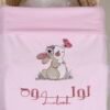 - التطريز: اسم الطفل + أرنب لطيف مع فراشة وورد.
